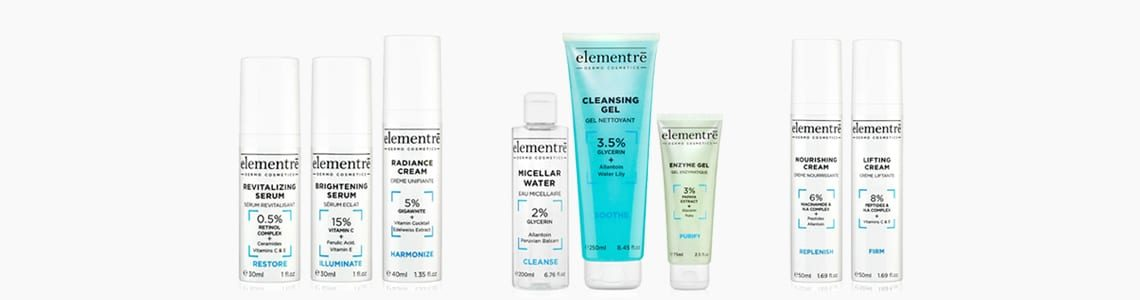 Formulated with optimal dosages of key actives, elementrē dermo cosmetics deliver visible, long-lasting skin improvements.